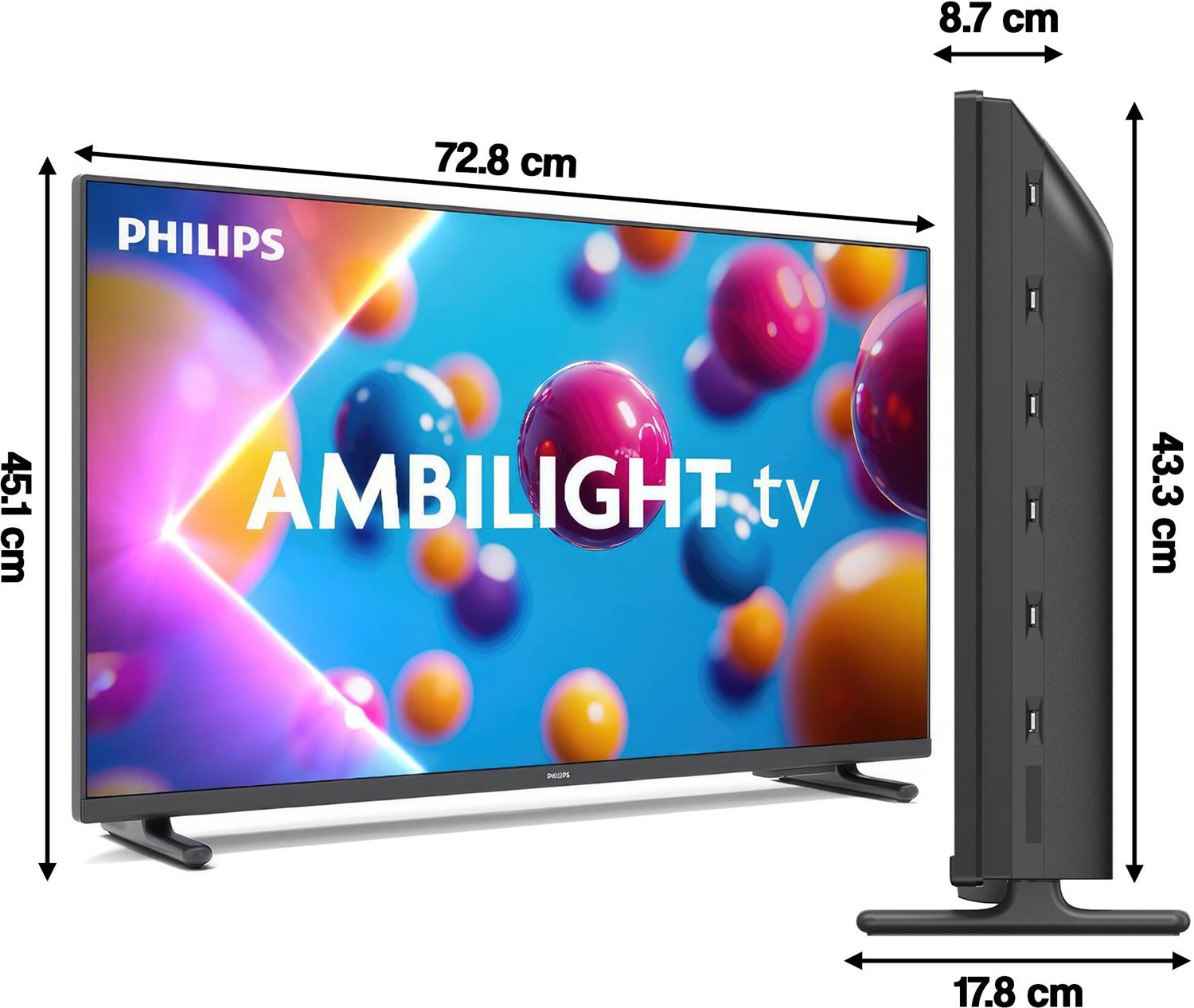 PHILIPS LED TV 32PFS6900/12 - Veličina dijagonale zaslona (inč): 32inča, Dijagonala zaslona (u cm): 80 cm, Zaslon: LED Full HD, Rezolucija zaslona: 1920 x 1080 piksela, Izvorna brzina osvježavanja: 60 Hz, AMBILIGHT, Program za obradu slike: Pixel Plus HD, Napredne značajke slike: ECO,Crystal Clear, Kućno kino, Filmovi, Igra, Monitor, Pixel Plus HD,Osobna, SmartTV aplikacije: Netflix, HBO, YouTube, Amazon Prime Video, Disney+ OS: TITAN OS Kapacitet memorije (Flash)*: 8 GB,Zvuk: 2.0-kanalni, Izlazna snaga (RMS): 12 W, Konfiguracija zvučnika: 2zvučnika punog opsega od 6 W, Sound Engine: Basic Sound Engine, HDR:HLG, HDR10, VESA: 100 x 100 mm