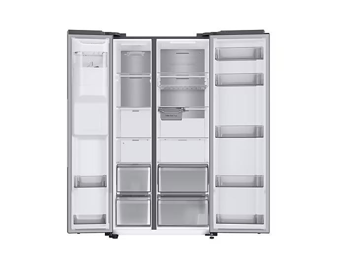 SAMSUNG hladnjak SBS RS68CG885DS9EF s AI Energy načinom rada, Twin Cooling Plus tehnologija, Digital inverter motor (20g jamstva), Metal Cooling Duct, Automatski unutarnji ledomat, Alarm za vrata, Dozator s filtrom za vodu, Razred energetske učinkovitosti D, Razina buke 35 dBA, Bruto zamrzivač (litre) 225 ℓ, Bruto hladnjak (litre) 409 ℓ.