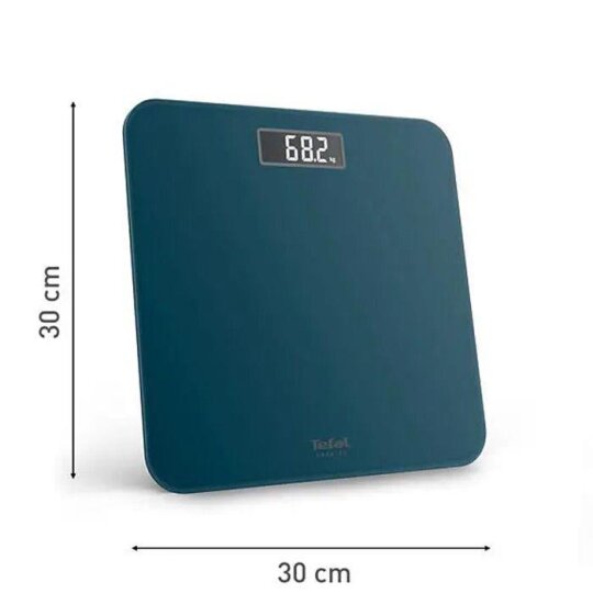 SEB Tefal osobna vaga PP1806V0 Boja: plava; LCD ekran Veliki kapacitet: do150 kg; Funkcija automatskog uključivanja i isključivanja; Staklena konstrukcija; Baterije uključene