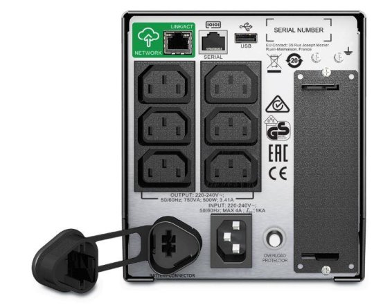 SMT750IC, Izlazna snaga 500 W, Tehnologija Line interactive AVR, Pure sinewave, Izlazni napon 230 V, Ulazni napon 230 V, Vrijeme punjenja 3 h, Vrijeme rada (50% load) 15 min