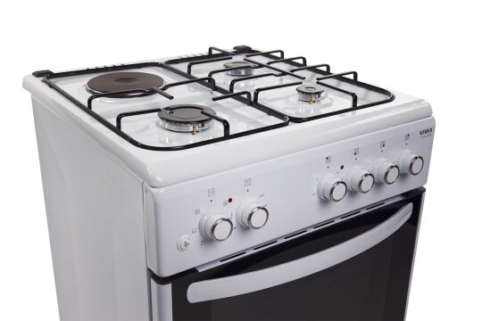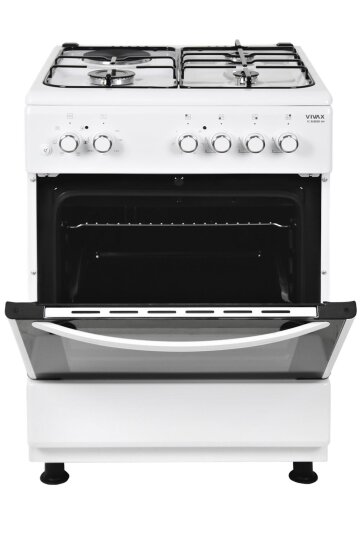 VIVAX samostojeći štednjak FC-31602IFS WH moderan je i praktičan izbor za svaku kuhinju. Ventilatorska pećnica zapremine 64 l s gril funkcijom omogućuje brzo i ravnomjerno pečenje na više razina, uz visoku energetsku učinkovitost razreda A. Plinsko-električna kombinacija s tri plinska plamenika i jednom električnom grijačom pločom osigurava fleksibilnost u pripremi jela, dok sigurnosni sustavi i jednostavno održavanje jamče bezbrižno korištenje.