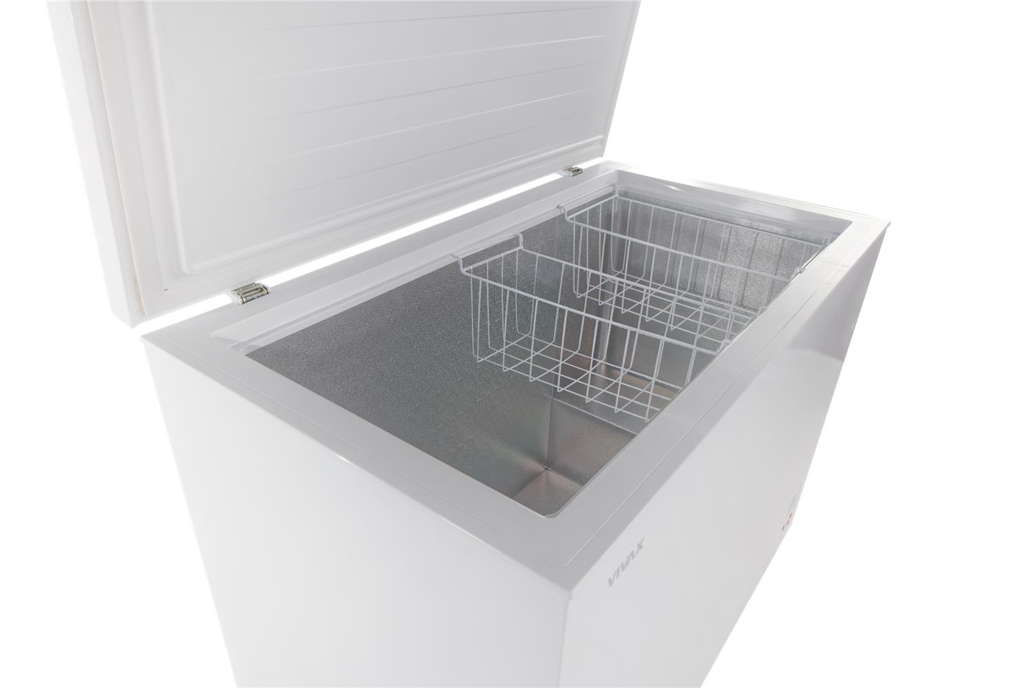 VIVAX zamrzivač CFR-293, najšire klimatske klase od Sub-normal do Tropic, pouzdano radi i pri niskim vanjskim temperaturama, što ga čini izvrsnim izborom za podrum, garažu ili stambeni prostor. Opremljen je inverter motorom koji osigurava nižu potrošnju energije, tiši rad, manju proizvodnju topline te dulji vijek trajanja uređaja zahvaljujući preciznoj regulaciji rada kompresora. Podesivi termostat omogućuje održavanje temperature od –18°C do –24°C, a uređaj se može koristiti i kao hladnjak, s rasponom od 8°C do 2°C. Dvije praktične košare olakšavaju organizaciju sadržaja i čišćenje unutrašnjosti, dok tihi rad dodatno doprinosi udobnosti pri korištenju u domu.